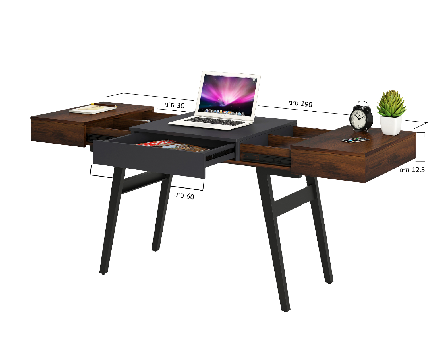 לשולחן המחשב הארגונומי יש 3 תאים נפתחים - בצדדים ובקדמת השולחן.
