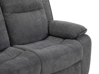 מערכת ישיבה דו ותלת בריפוד בד הכוללת עם 2 ריקליינרים בכל ספה, משענות ידיים רחבות, מושבים שמזמינים לנוחות, מראה צמוד לרצפה עם רגליים נמוכות והדומי רגליים מרופדים.