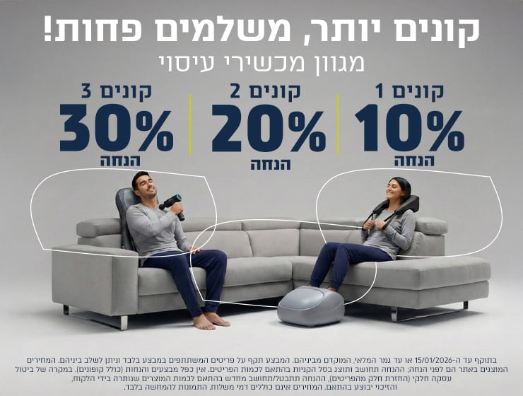 סוגי עיסוי שונים, אופציית חימום, מכשירי עיסוי ניידים או עם חיבור לחשמל, מכשירים שמתאימים גם לאזורים אחרים בגוף, שליטה בדרגות העוצמה ועוד המון אופציות שונות, כך שבטוח שתמצאו את מכשיר העיסוי המושלם בשבילכם.